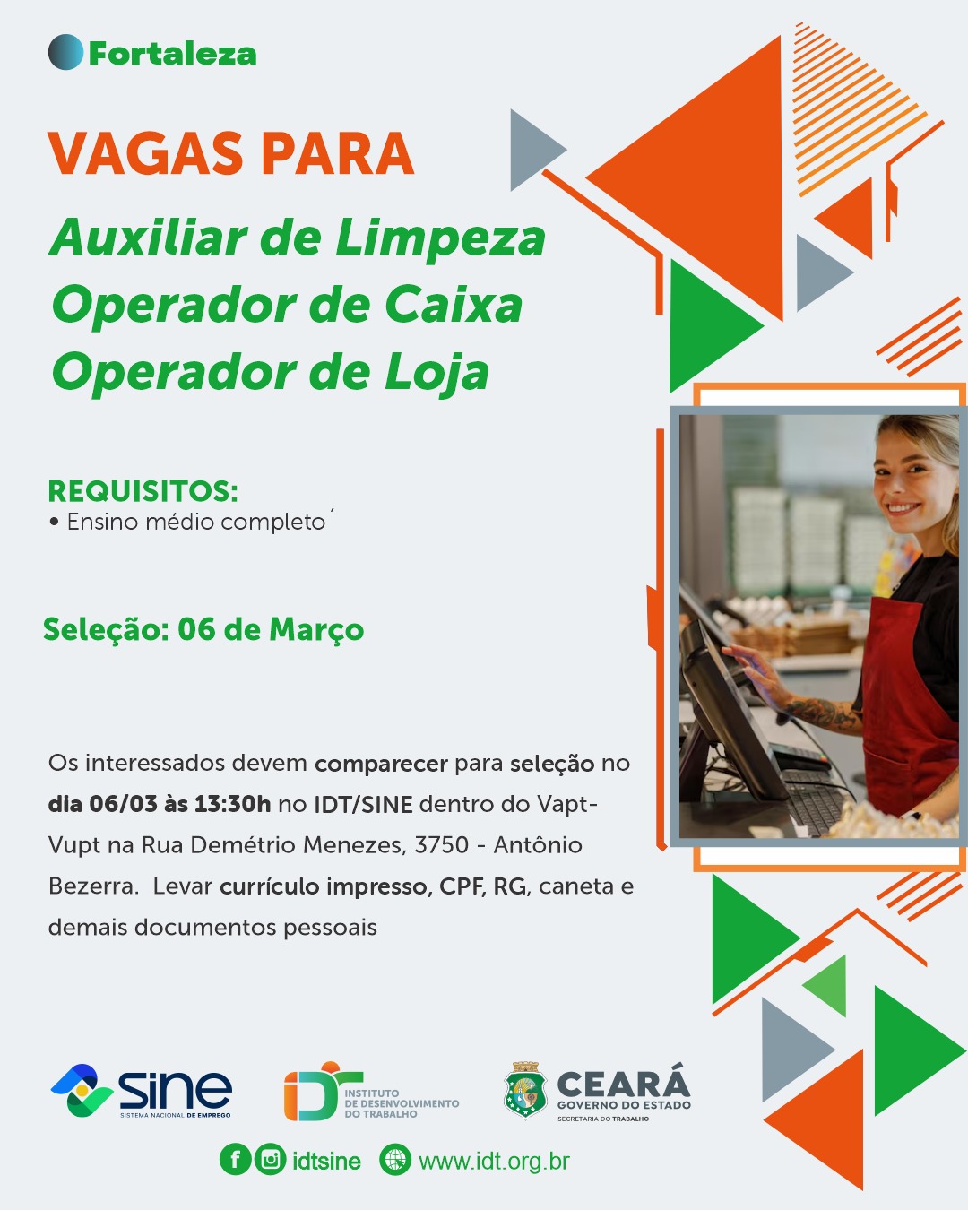 Se você está procurando emprego em Crateús ou deseja divulgar vagas da sua empresa, o IDT/SINE é o canal oficial de intermediação entre trabalhador e empregador.